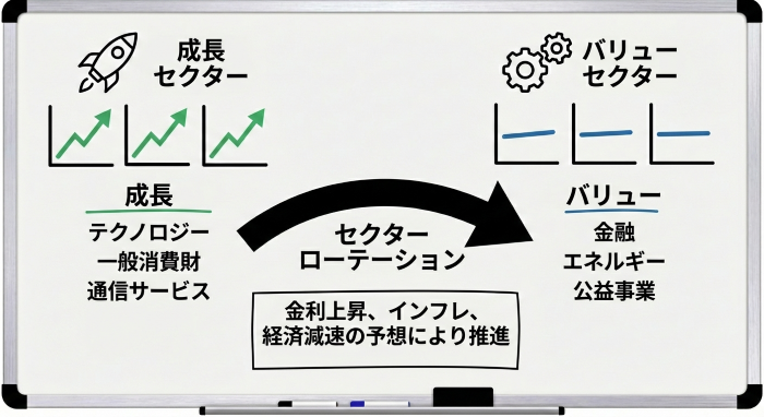 簡単に言えば、投資家の資金が「ある業種(セクター)」から「別の業種」へと大移動すること。